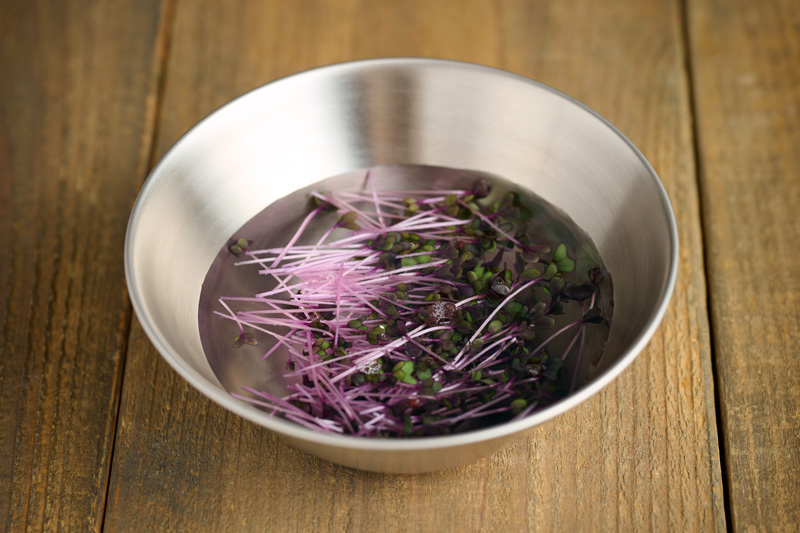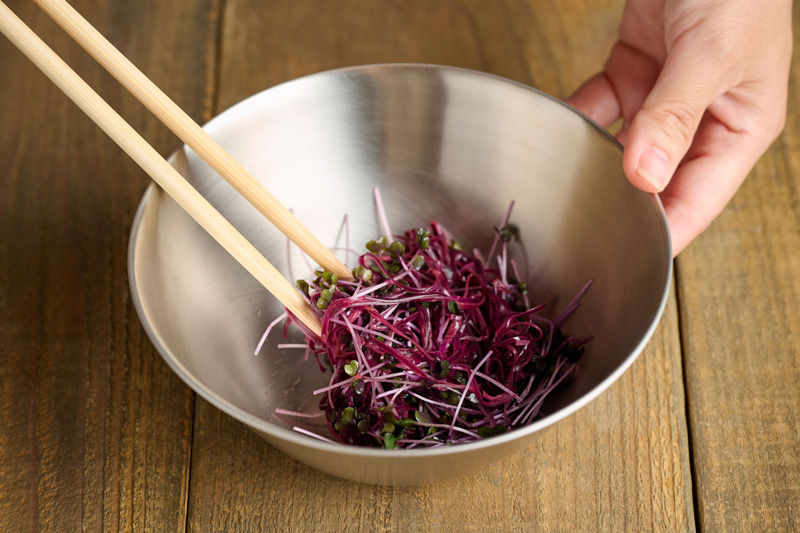 赤キャベツスプラウトを切って水にさらし、水気を切る。