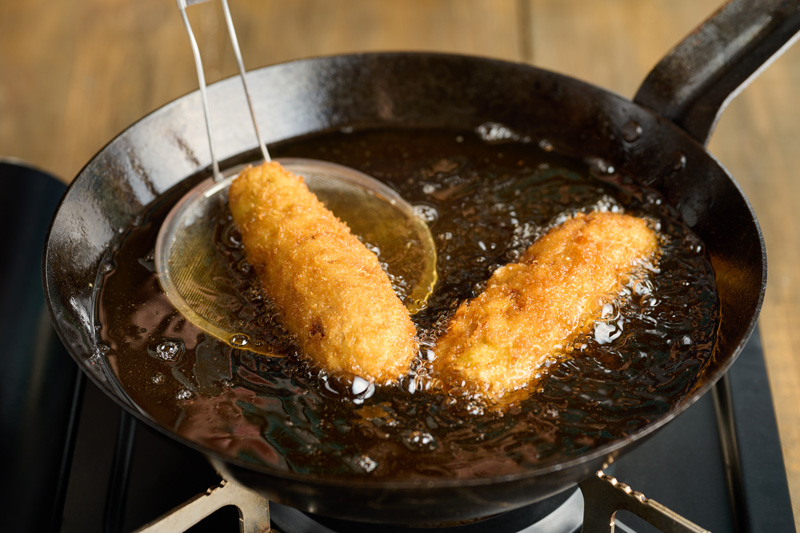 170℃に熱した油でなすを転がしながら、全体がきつね色になるまで揚げる。
