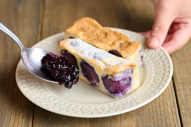 ジューシーなナガノパープルをたっぷり使った、フランス菓子「クラフティ」をアレンジしたスイーツ。