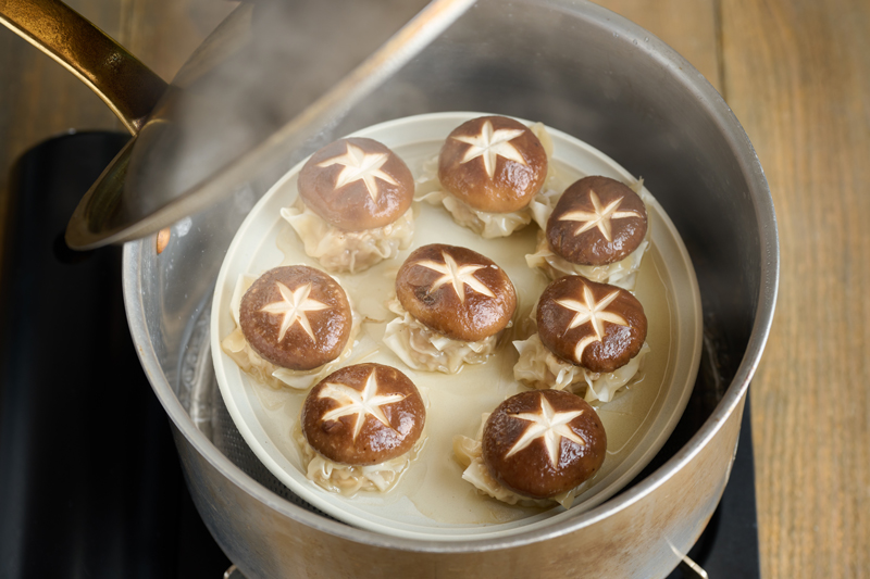 肉ダネの上に椎茸のかさをまるごとのせて蒸し上げることで、口に入れた瞬間、ジューシーな肉汁と椎茸の香りが一気に広がります。