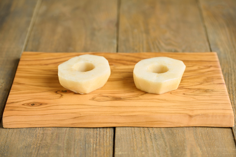 おしり側(ふっくらした方)の芯を丸型でくり抜き、それをさらに横半分に切る。