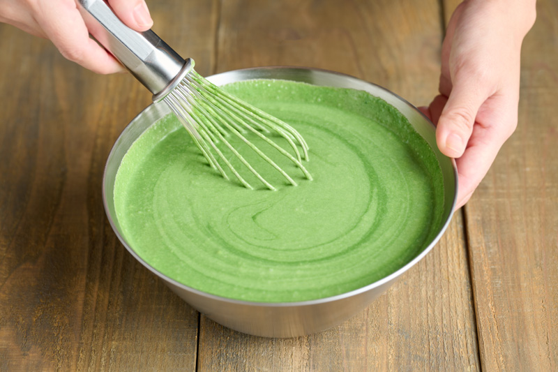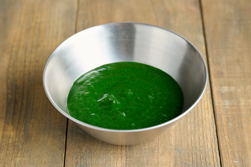 最後に、ほうれん草ピューレを加えて混ぜ合わせる。