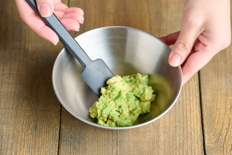 ボウルにワカモレの材料を入れ、アボカドを軽くつぶしながら混ぜる(少し固まりが残る程度)。