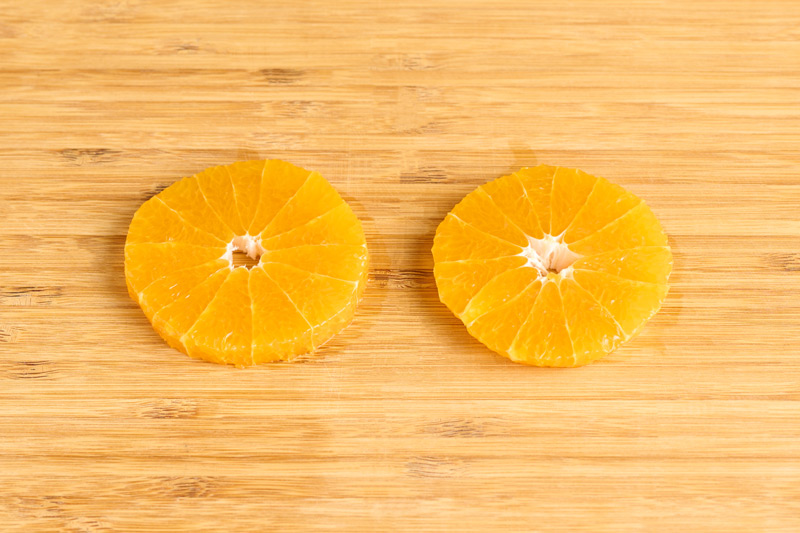 デコポンは皮をむき、1cm幅の輪切りにする。