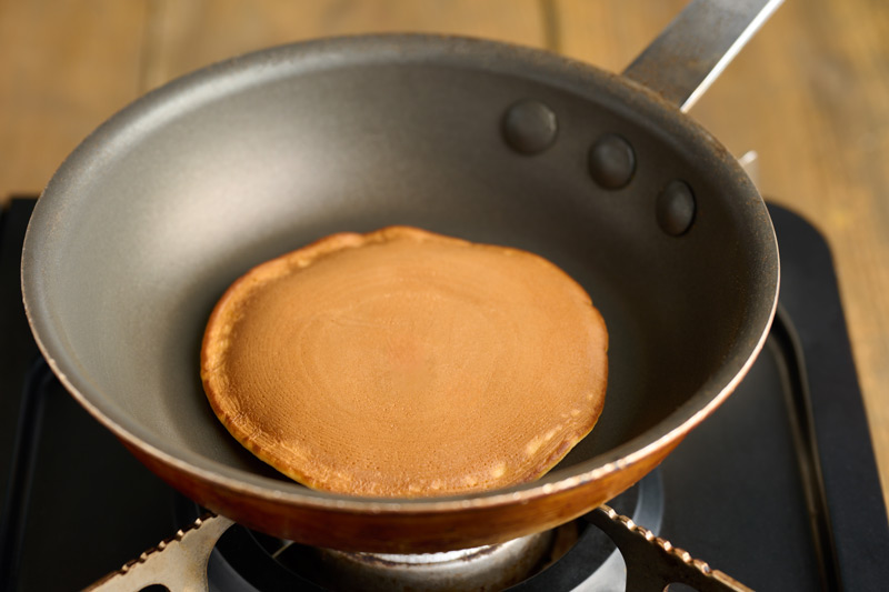 表面に気泡が出てきたら裏返し、両面をきつね色になるまで焼く。
